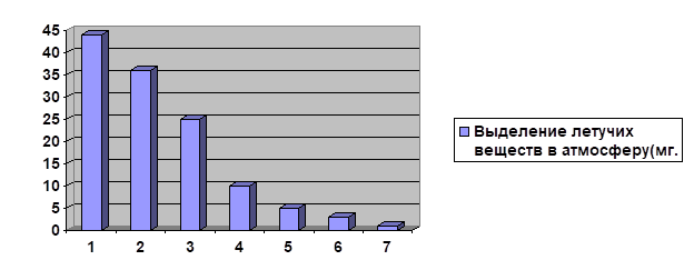 6. Линолеумы ПВХ (2,5/3 мг/м2 час). 7. Ковровые покрытия (~0,5 мг/м2 час).